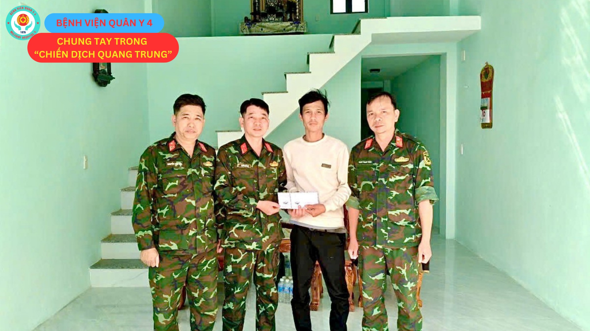 Hoạt động trao tặng “Gói quà an cư” trong “Chiến dịch Quang Trung” không chỉ mang ý nghĩa nhân văn sâu sắc, mà còn là một trong những hoạt động thiết thực nằm trong chuỗi hoạt động hướng tới 𝐤ỷ 𝐧𝐢ệ𝐦 𝟓𝟎 𝐧ă𝐦 𝐍𝐠à𝐲 𝐭𝐡à𝐧𝐡 𝐥ậ𝐩 𝐁ệ𝐧𝐡 𝐯𝐢ệ𝐧 𝐐𝐮â𝐧 𝐲 𝟒 (𝟐𝟏/𝟖/𝟏𝟗𝟕𝟔 – 𝟐𝟏/𝟖/𝟐𝟎𝟐𝟔). Thông qua những việc làm cụ thể, nghĩa tình vì Nhân dân, cán bộ, nhân viên, hội viên phụ nữ Bệnh viện Quân y 4 tiếp tục phát huy truyền thống “Bộ đội Cụ Hồ – Thầy thuốc như mẹ hiền”, góp phần tô thắm thêm bề dày 𝟓𝟎 𝐧ă𝐦 𝐱â𝐲 𝐝ự𝐧𝐠, 𝐜𝐡𝐢ế𝐧 đấ𝐮 𝐯à 𝐭𝐫ưở𝐧𝐠 𝐭𝐡à𝐧𝐡. Đây cũng là dịp để mỗi cán bộ, chiến sĩ, nhân viên trong toàn bệnh viện nhìn lại chặng đường đã qua, thêm tự hào về truyền thống vẻ vang, từ đó không ngừng nỗ lực rèn luyện y đức, nâng cao y thuật, hoàn thành tốt nhiệm vụ chăm sóc, bảo vệ sức khỏe bộ đội và Nhân dân trong tình hình mới.